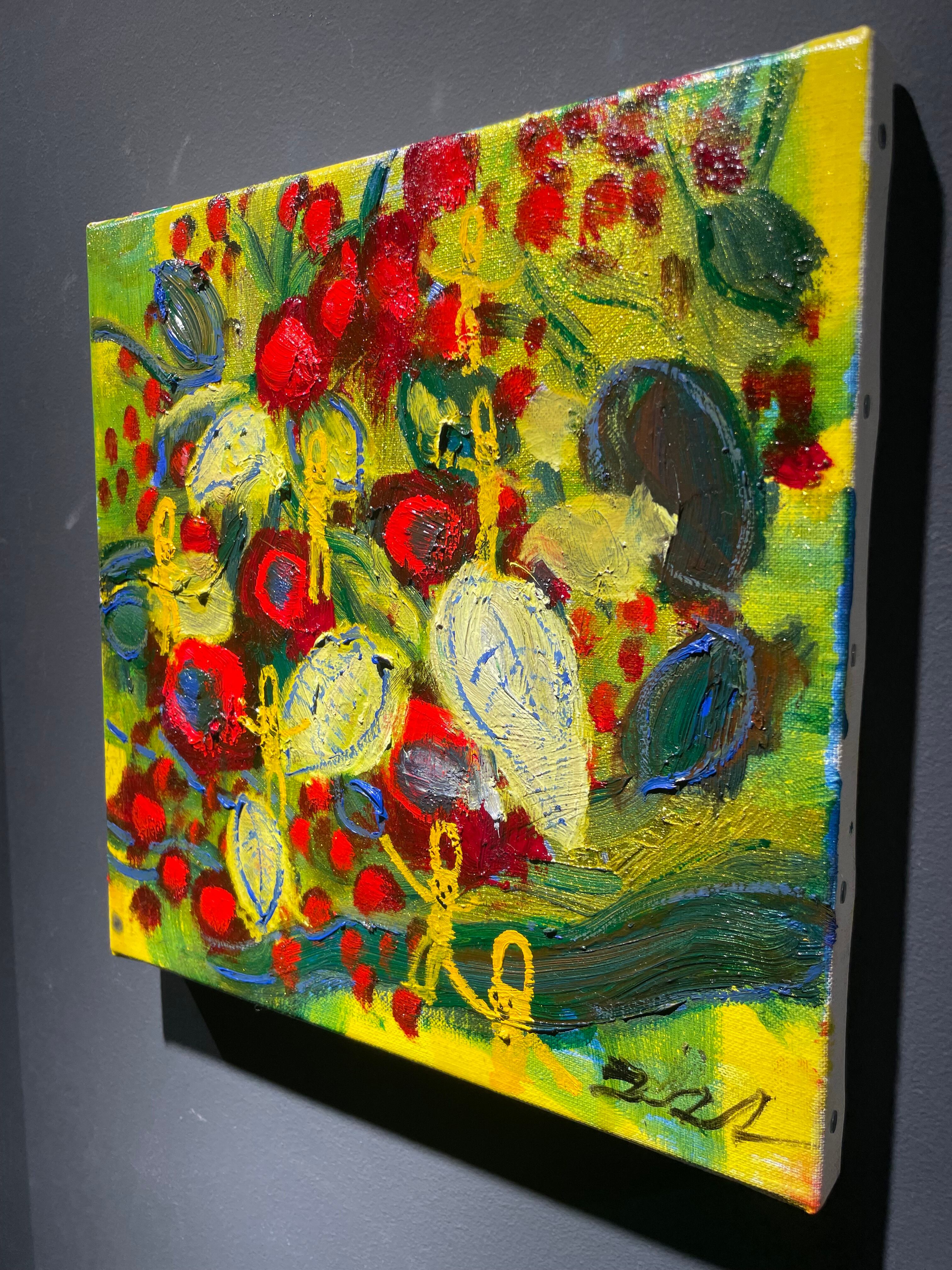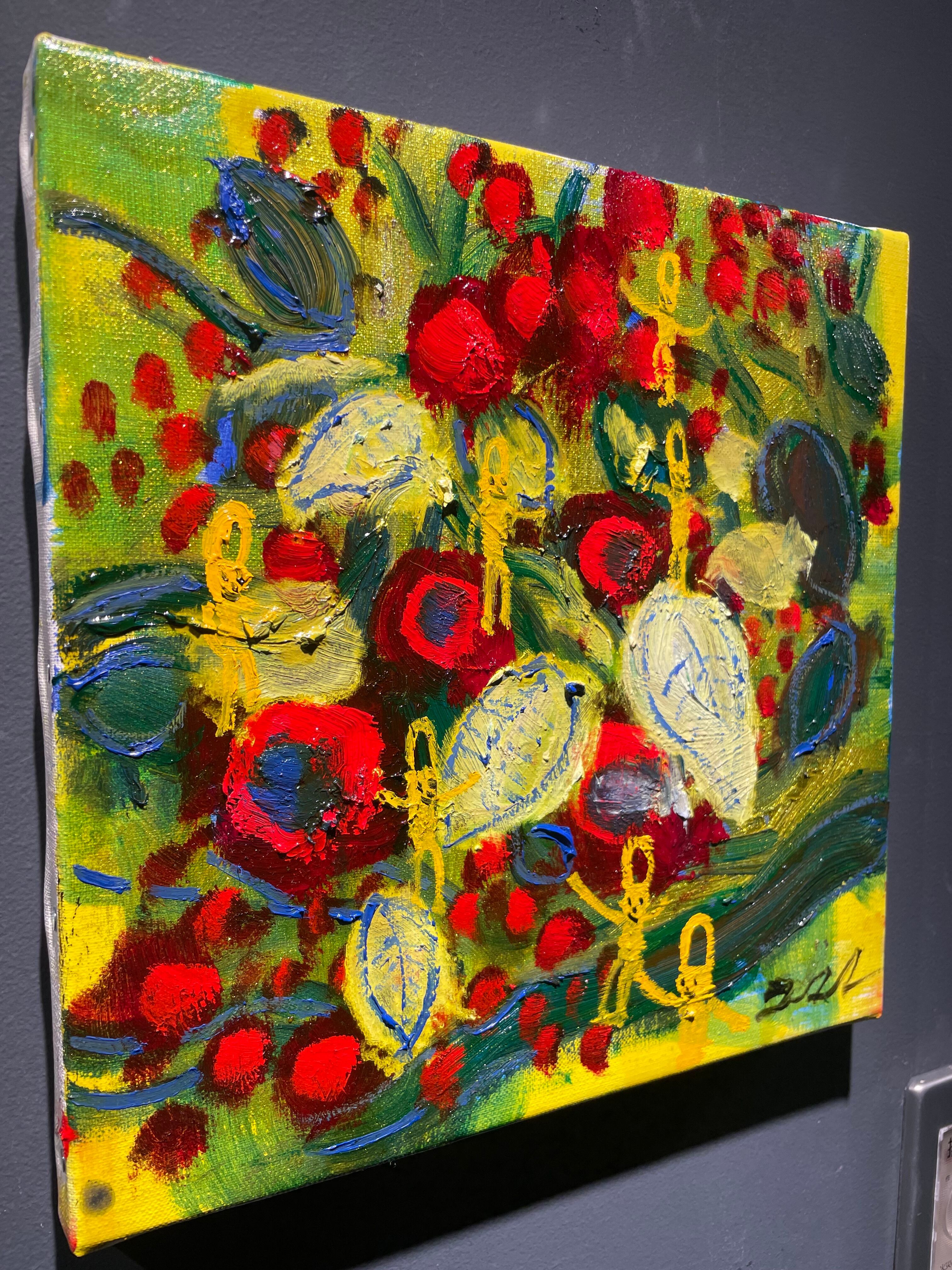 鮮やかな色同士の組み合わせで、お花モチーフでありながら、力強さやエネルギーを感じる作品です。